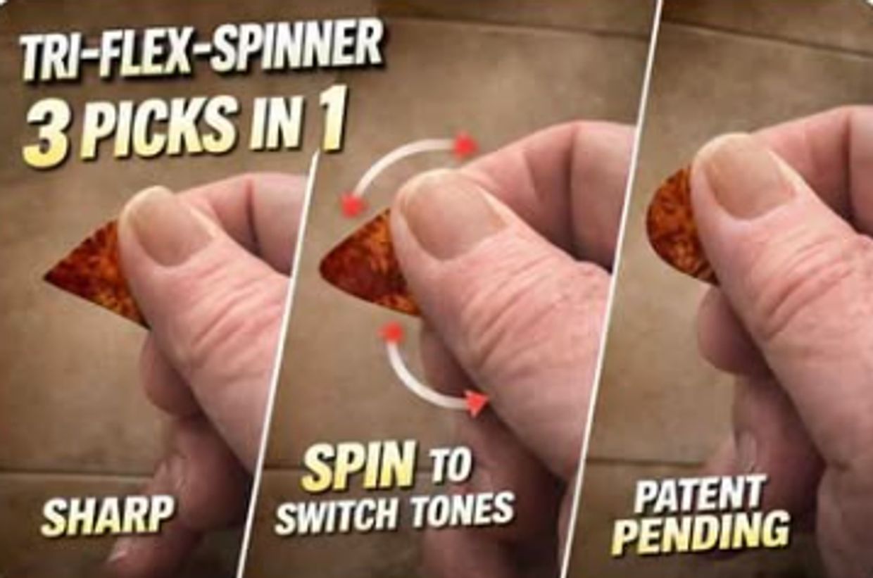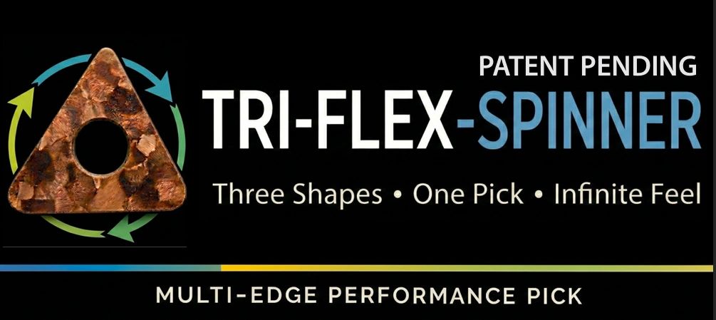 We started Triflex Spinner in 2026 to help guitarist create multiple sounds with one pick. Tri-Flex-Spinner is a revolutionary guitar pick with three unique playing tips in one pick. Simply rotate the pick between your fingers to instantly change your tone and attack.